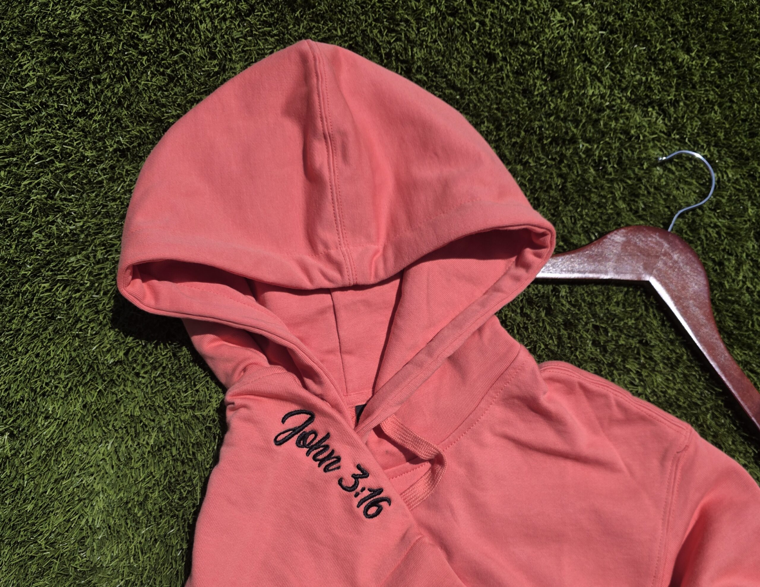 Designed for women of strong belief, this Jesus hoodie blends cozy comfort with clear conviction. The high-definition embroidery features a raised Jesus logo across the chest and a subtle yet powerful John 3:16 scripture on the shoulder, stitched with care. Perfect for faith-driven style in everyday life.